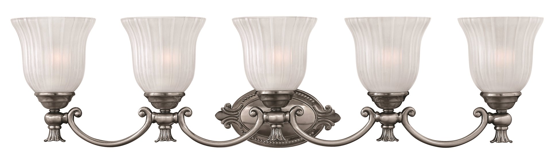 100w Bath Francoise MED Frosted Ribbed Polished Antique Nickel Bath Five Light