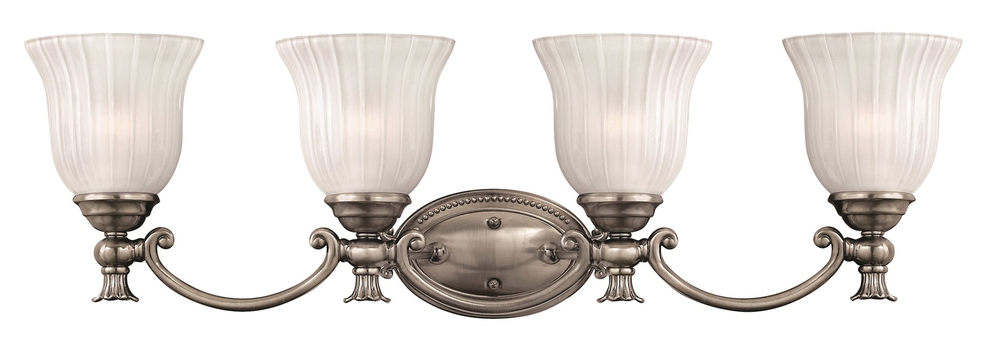 100w Bath Francoise MED Frosted Ribbed Polished Antique Nickel Bath Four Light