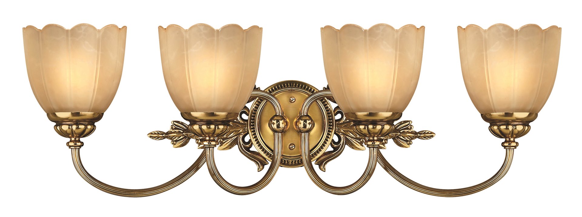 100w Bath Isabella MED Marbled Etched Amber Burnished Brass Bath Four Light