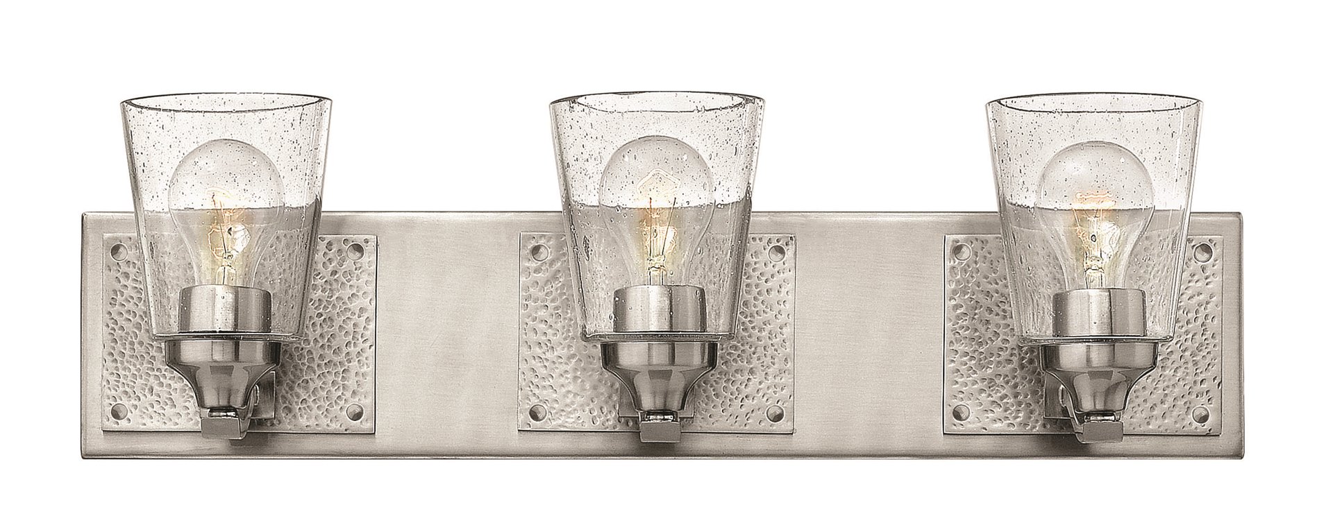 100w Bath Jackson MED Clear Seedy Brushed Nickel Bath Three Light