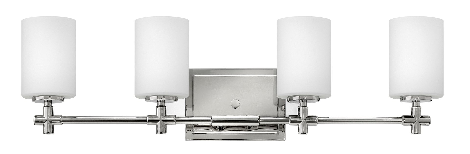 100w Bath Laurel MED Etched Opal Polished Nickel Bath Four Light