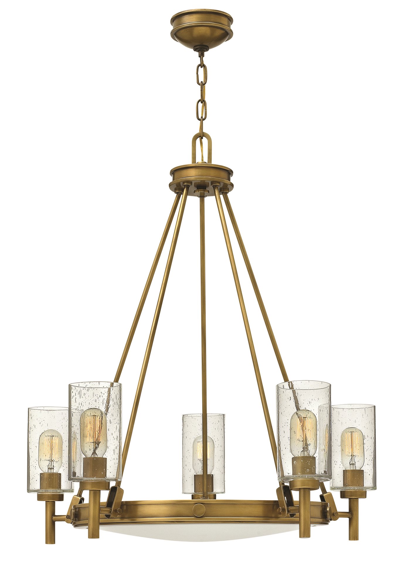 100w Chandelier Collier MED Clear Seedy and Etched Heritage Brass Single Tier Foyer