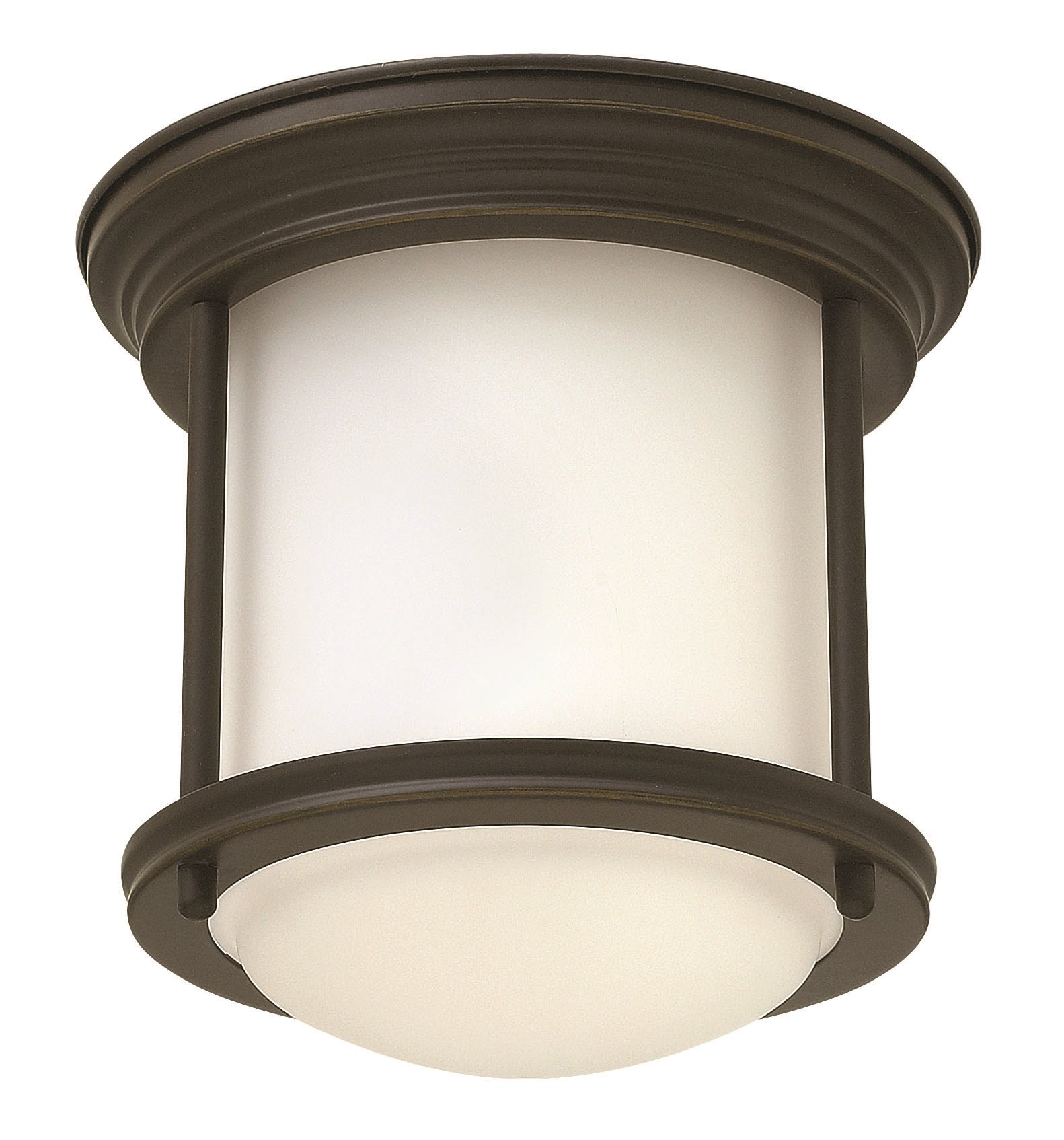 The Hadley is a retro-styled flush mount collection available in four classic finish options: Antique Nickel, Brushed Bronze, Chrome and Oil Rubbed Bronze. The etched opal, one piece glass shade features a slim design that will complement a variety of decors.