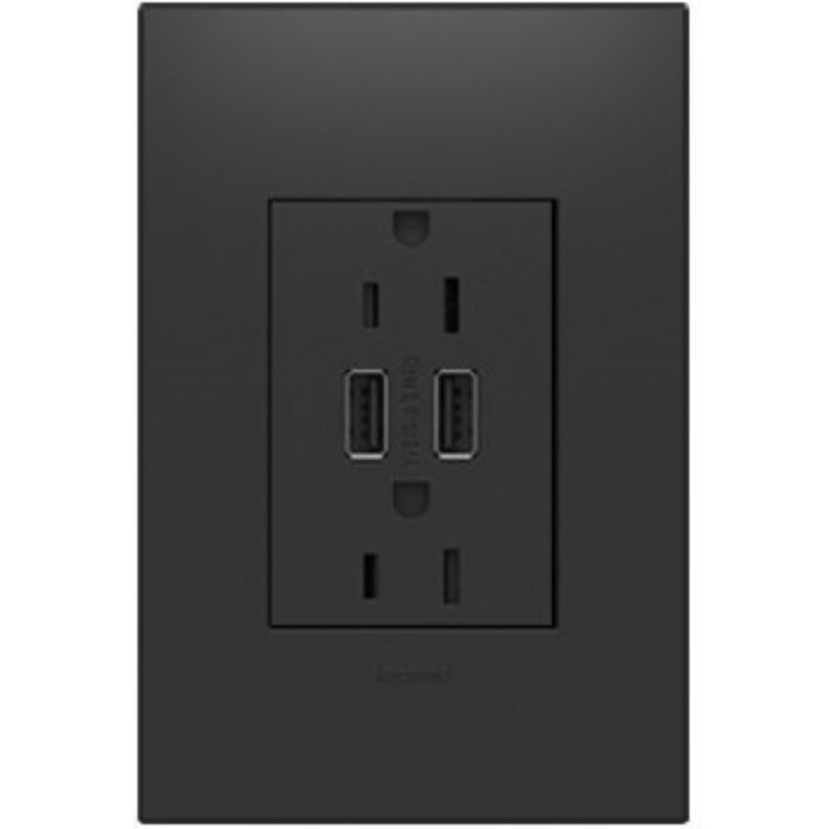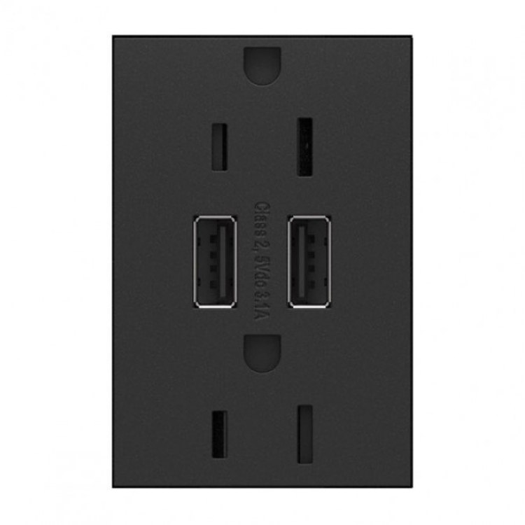 15a adorne Graphite Tamper Resistant USB Plus-Size Combo Duplex Outlet