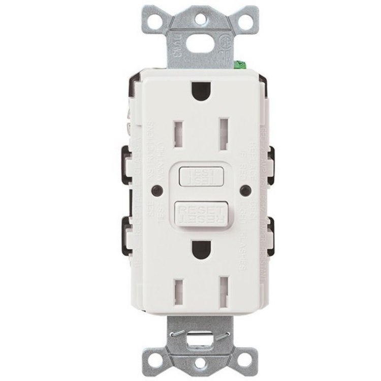 15a GFCI Self-Testing Tamper Resistant Claro White NEMA 5-15R Duplex Receptacle