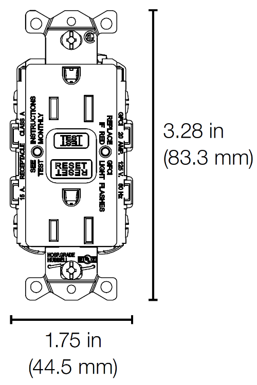 Reverse wire safety feature – if wired incorrectly there will be no power to the face or to downstream receptacles for added safety.
