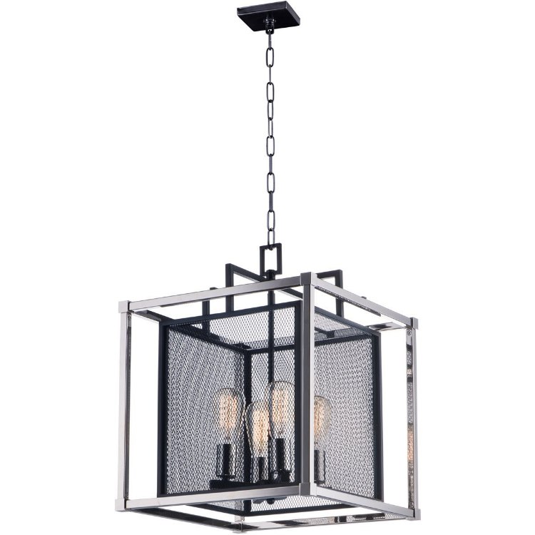 Industrial meets contemporary in this striking collection. Metal mesh finished in a matte Black gives amazing contrast to the Polished Nickel frame. This refined design gives that element of uniqueness to any room décor.