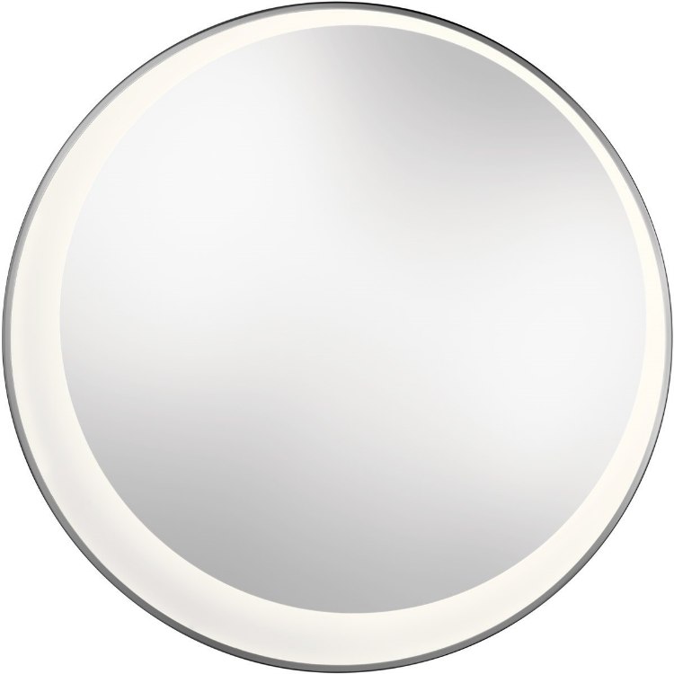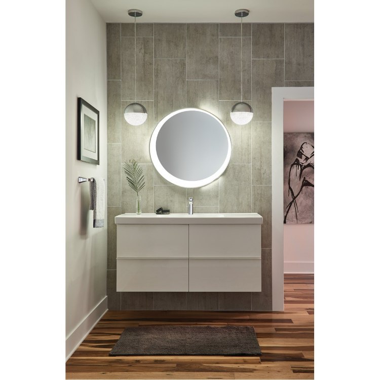 30" Round Off-Center Frosted Face and White Acrylic Sides Integrated WW LED Mirror