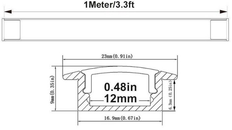 Configuration: U-Shape Channel; Extruded aluminum Diffuser; Oyster White Cover