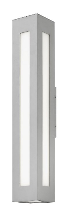 Dorians robust design in durable aluminum construction is offered in either Titanium or Bronze finishes. This contemporary fixture allows light to emit from white etched glass windows.