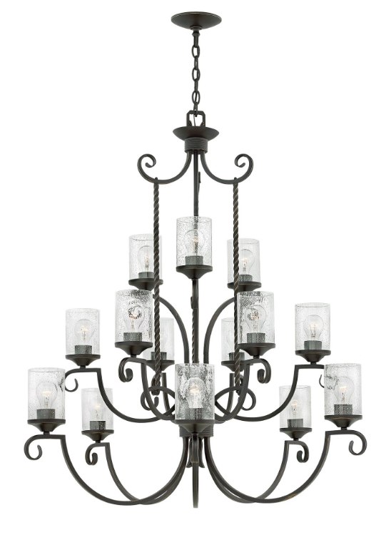 60w Chandelier Casa MED Clear Seedy Olde Black Three Tier