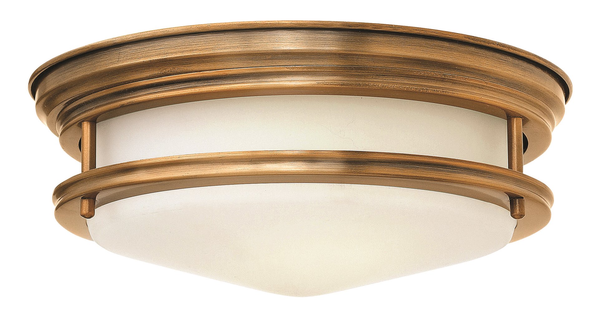 The Hadley is a retro-styled flush mount collection available in four classic finish options: Antique Nickel, Brushed Bronze, Chrome and Oil Rubbed Bronze. The etched opal, one piece glass shade features a slim design that will complement a variety of decors.
