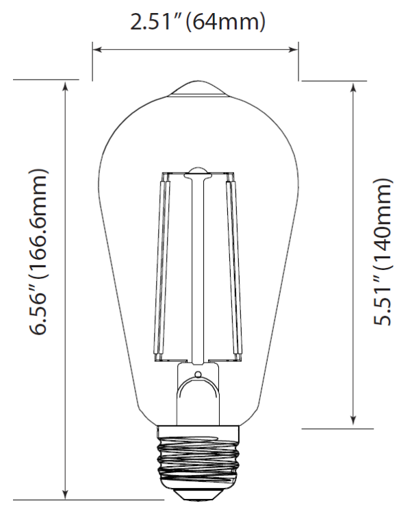 6.5w ≅40w 450lm 22k 120v E26 ST19 Filament Dimmable SW LED Light Bulb