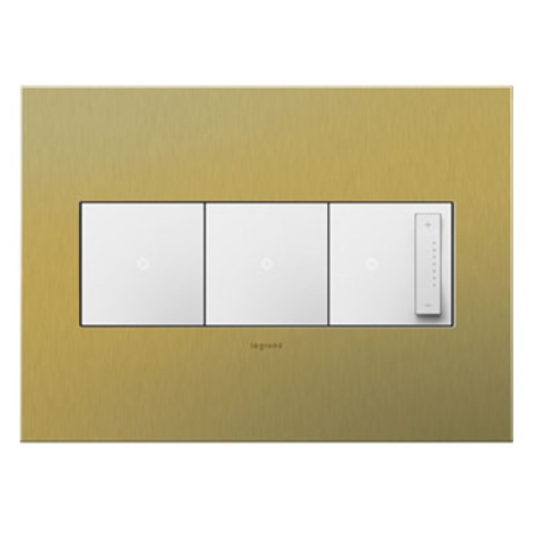 • The adorne 3-Gang Wall Plate is perfectly sized to fit any combination of up to three standard and up to six half-sized adorne Switches, Outlets or Dimmers. (Dimmers not available in 1/2 sizes.)