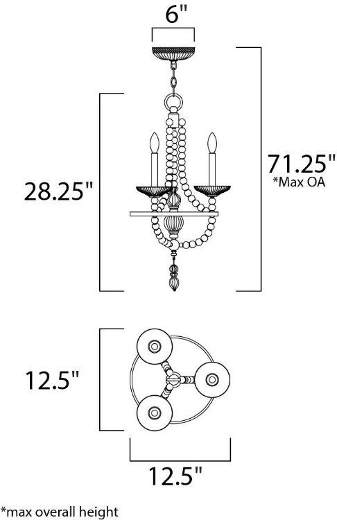 Paris 3-Light Chandelier PN Clear Glass CA Incandescent (OA HT 33"-71.25") (CAN 6"x6"x1.75")36" Chain