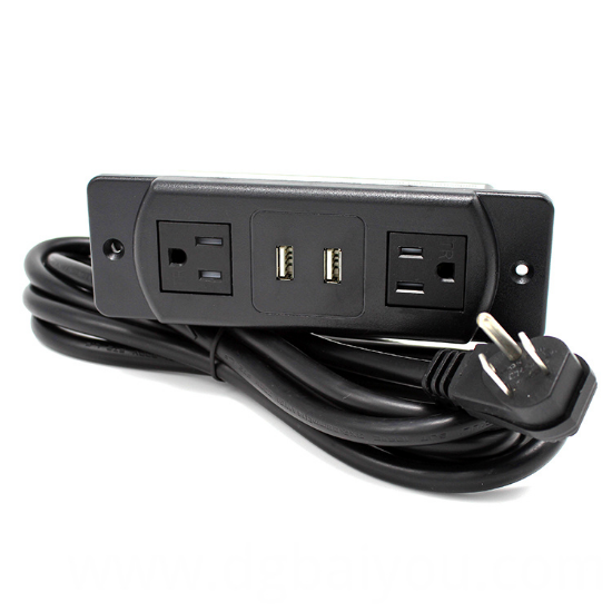 USB Combo Three Prong US Flat Plug 10' Desktop Duplex Power Outlet